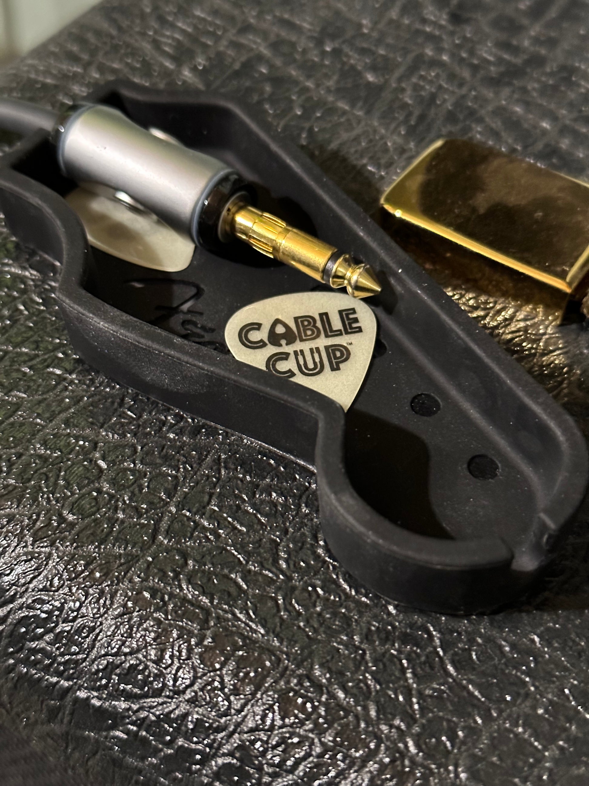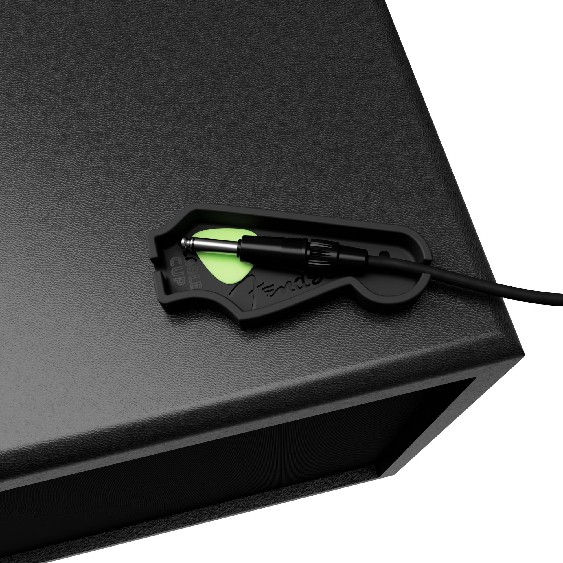 The CableCup Strat Headstock has the utility of holding your picks and cables, in that iconic Strat headstock shape that we all know and love.